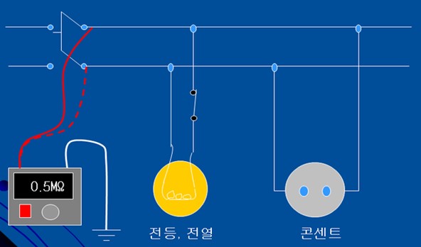 - 전원선 두 가닥을 동시에 절연측정하지 않는다.