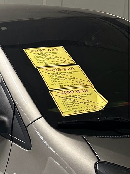 사진처럼 아파트 주차장에 자리가 없어 어쩔 수 없이 이중주차를 했을 때나 잠깐 주차를 했는데 주차 스티커가 붙여진 경험 한 번씩 해보셨을 겁니다.